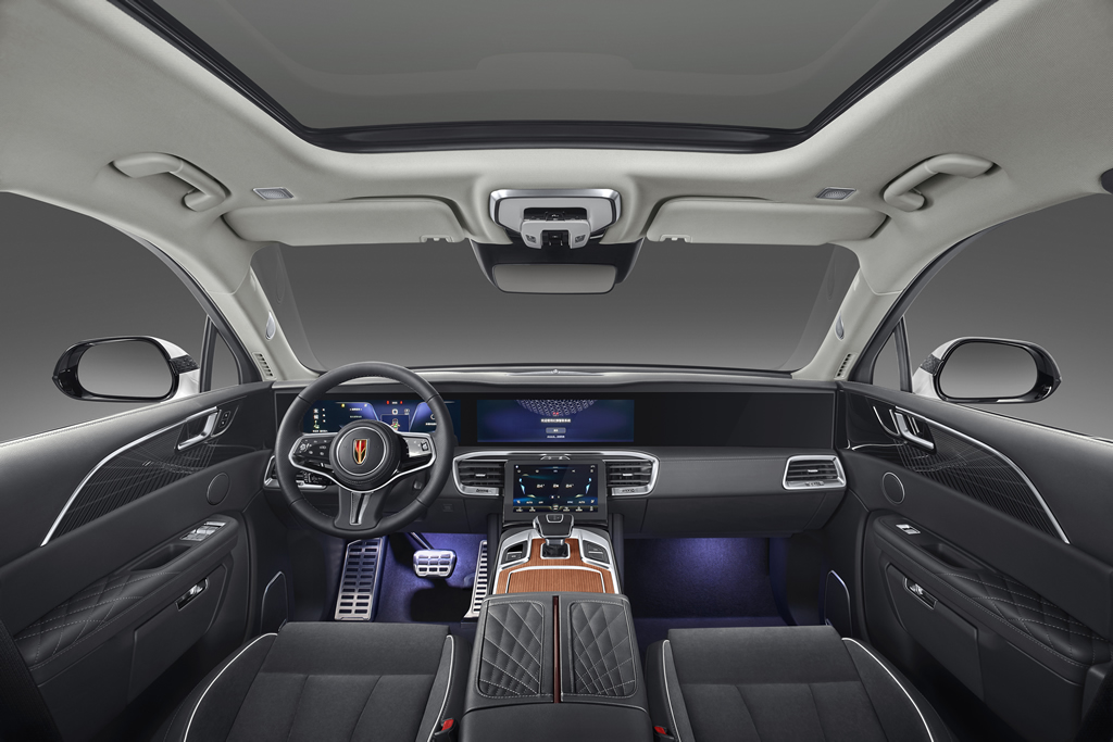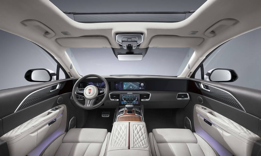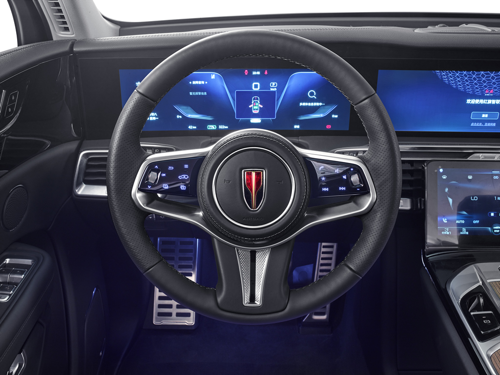 The spacious interior of the Chinese Hongqi EHS9 car , is further enhanced with the integration of a panoramic sunroof, creating a comfortable and ultimate transparent experience for passengers. Whether taking a leisurely city drive or embarking on a tranquil country expedition, the panoramic sunroof lends itself to immerse occupants in the atmosphere around them. Alongside this, the brand offers a multitude of premium features and cutting-edge technology, setting it apart in the market.